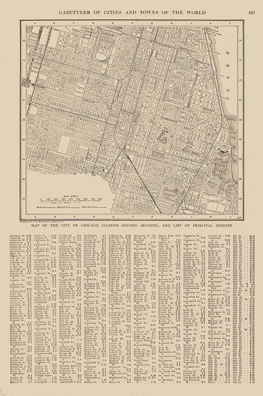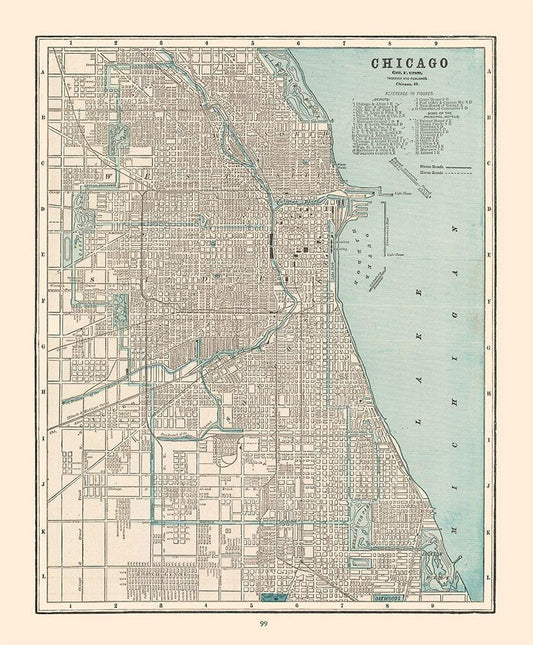 Chicago Illinois - Cram 1892 White Modern Wood Framed Art Print with Double Matting by Cram