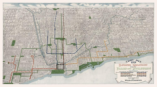 Chicago Illinois - Aeroview 1916 White Modern Wood Framed Art Print with Double Matting by Aeroview