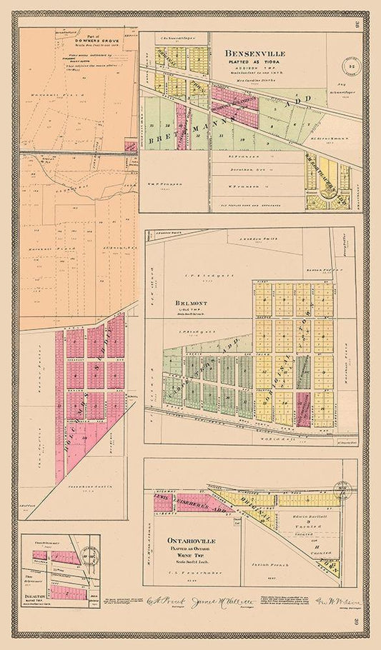 Downers Grove Tioga Belmont Ontarioville Illinois White Modern Wood Framed Art Print with Double Matting by Middle - West Publishing Co.