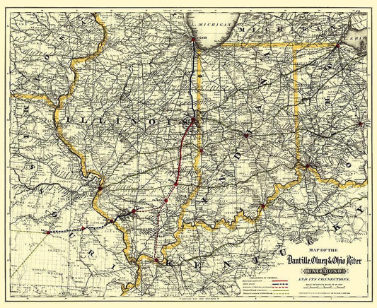 Danville, Olney and Ohio River RR - Colton 1881 White Modern Wood Framed Art Print with Double Matting by Colton