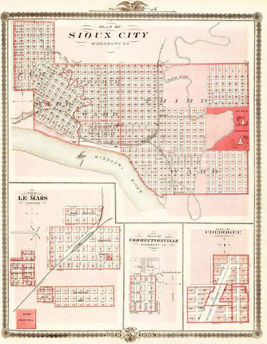 Sioux City, Le Mars Iowa - Andreas 1875 White Modern Wood Framed Art Print with Double Matting by Andreas