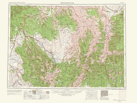 Grangeville Idaho Washington Oregon Quad White Modern Wood Framed Art Print with Double Matting by USGS