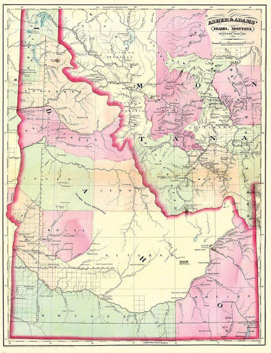 Idaho - 1874 White Modern Wood Framed Art Print with Double Matting by Asher