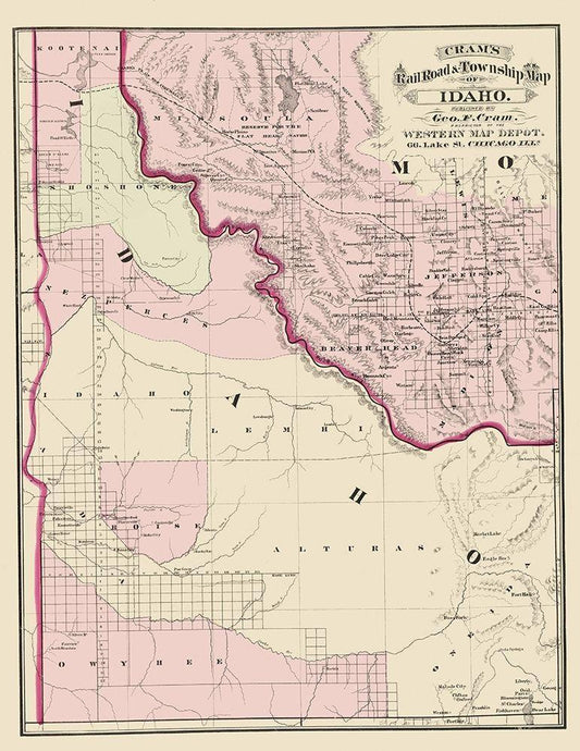 Idaho - Cram 1875 White Modern Wood Framed Art Print with Double Matting by Cram