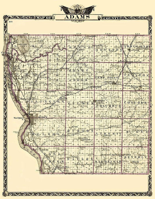 Adams Illinois Landowner - Warner 1870 White Modern Wood Framed Art Print with Double Matting by Warner
