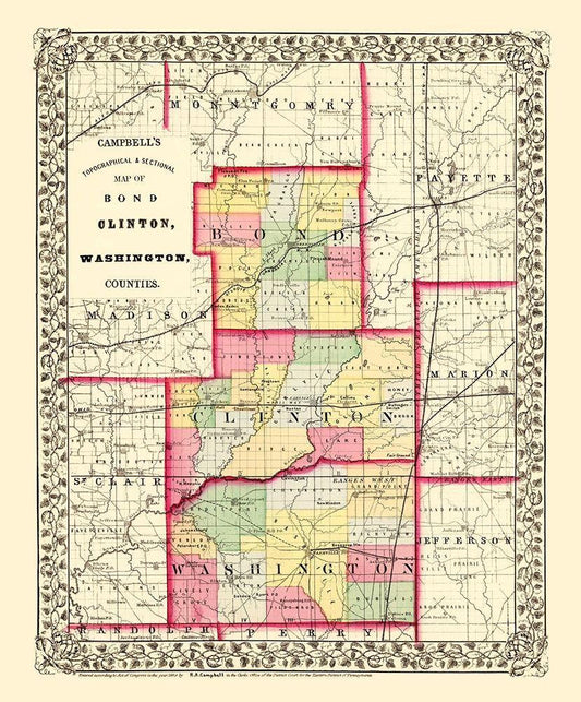 Bond Clinton Washington Illinois - Cambell 1870 White Modern Wood Framed Art Print with Double Matting by Cambell