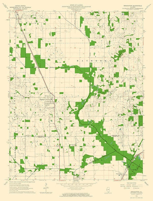 Broughton Illinois Quad - USGS 1963 White Modern Wood Framed Art Print with Double Matting by USGS