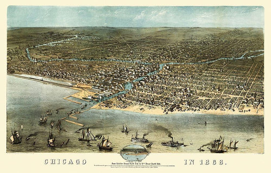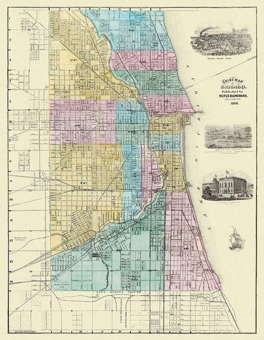 Chicago Illinois Plat - Blanchard 1869 White Modern Wood Framed Art Print with Double Matting by Blanchard