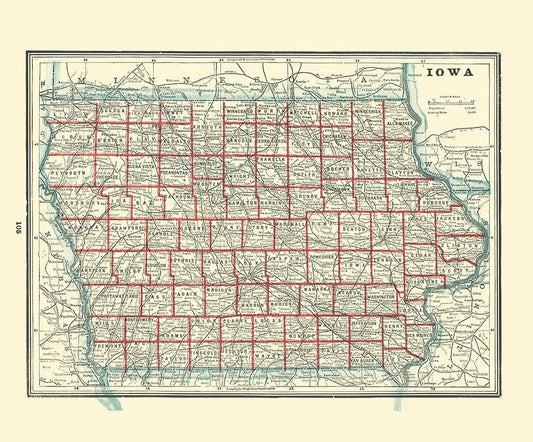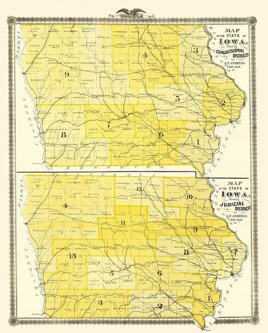 Iowa with Congressional, Judicial Districts 1874 White Modern Wood Framed Art Print with Double Matting by Andreas