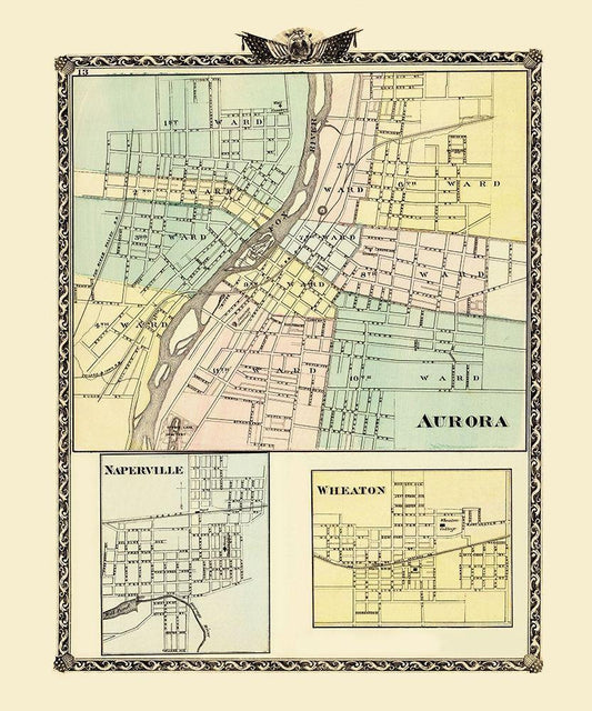 Aurora, Wheaton, Naperville Illinois - Warner 1870 White Modern Wood Framed Art Print with Double Matting by Warner