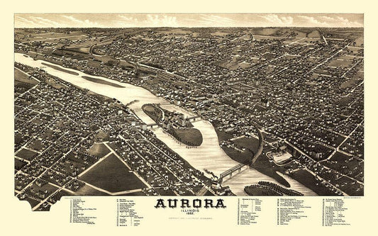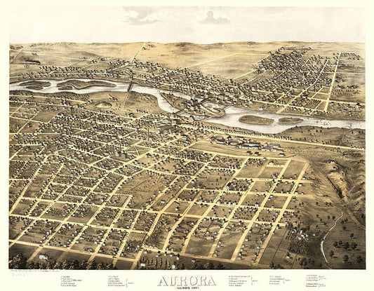 Aurora Illinois - Beck 1867 White Modern Wood Framed Art Print with Double Matting by Beck