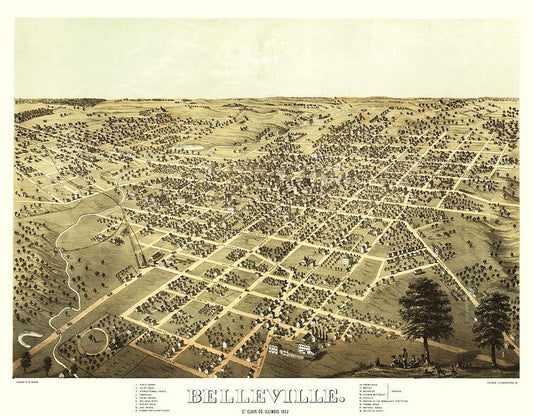Belleville Illinois - Warner 1876 White Modern Wood Framed Art Print with Double Matting by Warner