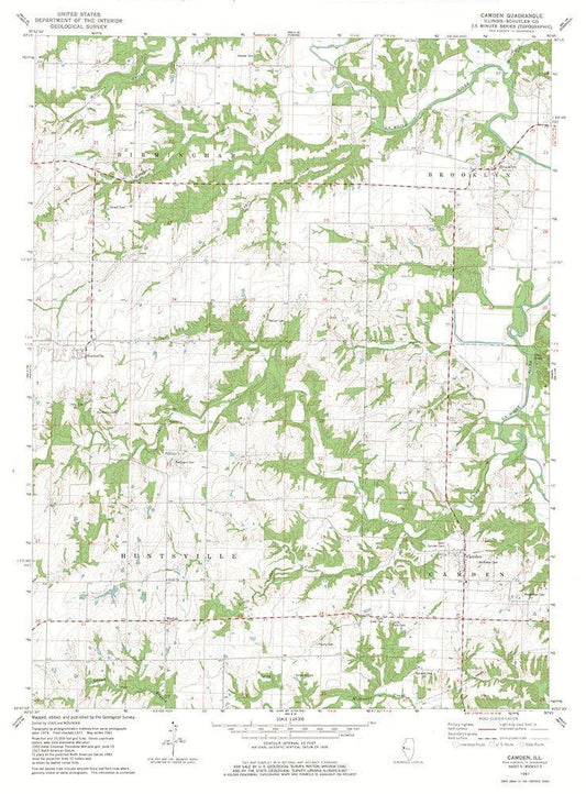 Camden Illinois Quad - USGS 1981 White Modern Wood Framed Art Print with Double Matting by USGS