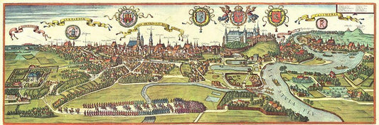 Poland White Modern Wood Framed Art Print with Double Matting by Hogenberg, Braun