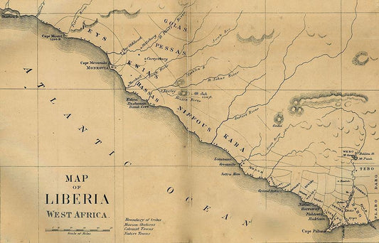 American Colonization Map of Liberia White Modern Wood Framed Art Print with Double Matting by G F Nesbit and Co