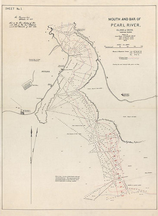 Pearl River Oahu County Hawaii - Sands 1873 White Modern Wood Framed Art Print with Double Matting by Sands