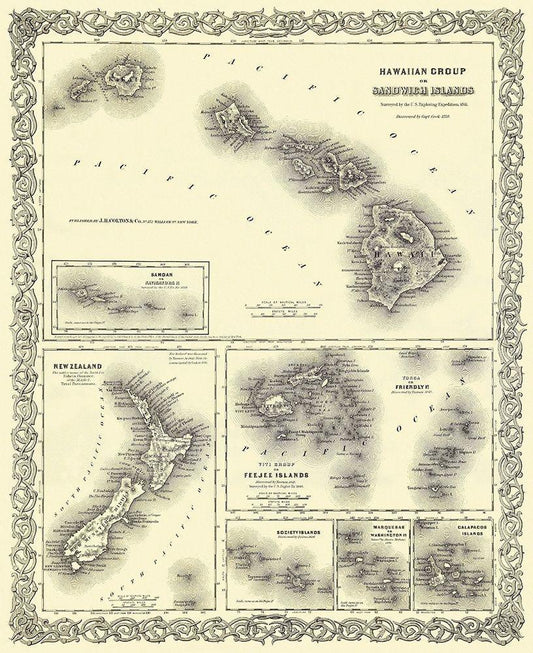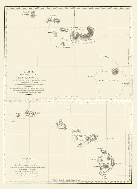 Hawaii or Iles Sandwich - Bernizet 1797 White Modern Wood Framed Art Print with Double Matting by Bernizet