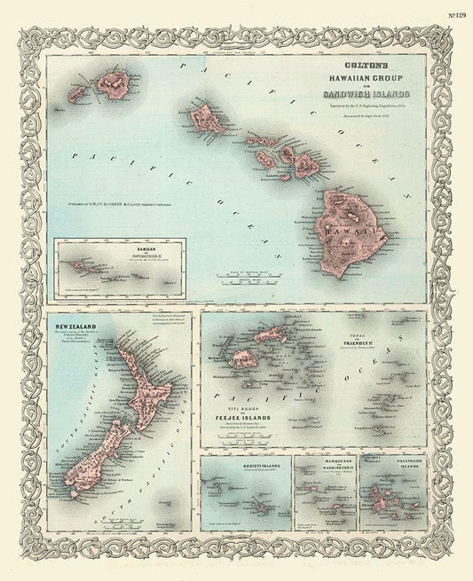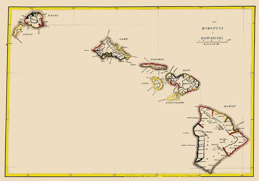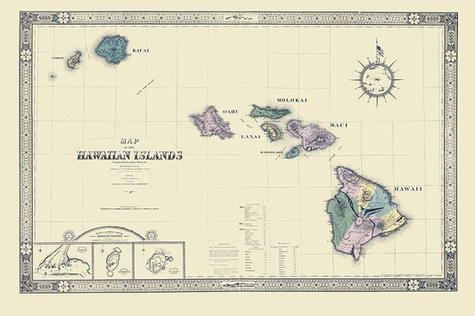 Hawaiian Islands - Baker 1794 White Modern Wood Framed Art Print with Double Matting by Baker