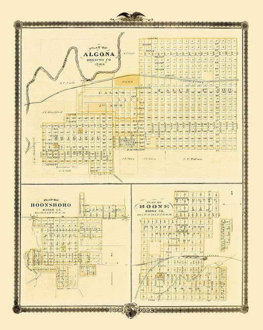 Algona, Boone, Boonsboro Iowa - Andreas 1874 White Modern Wood Framed Art Print with Double Matting by Andreas