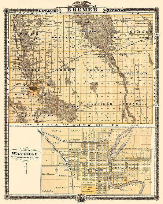 Bremer Iowa Landowner - Andreas 1874 White Modern Wood Framed Art Print with Double Matting by Andreas