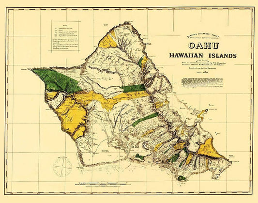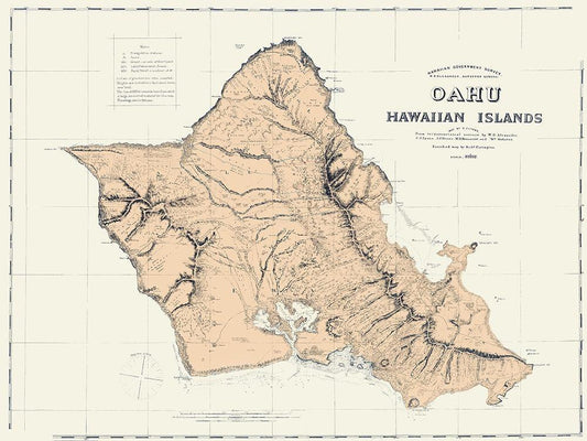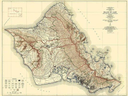 Oahu Island Hawaii - USGS 1938 White Modern Wood Framed Art Print with Double Matting by USGS