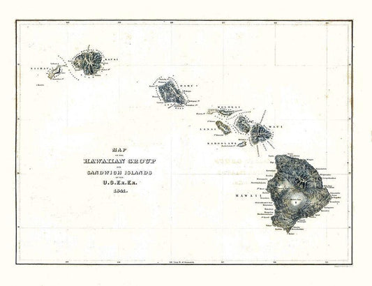 Hawaii Hawaii - Wilkes 1841 White Modern Wood Framed Art Print with Double Matting by Wilkes