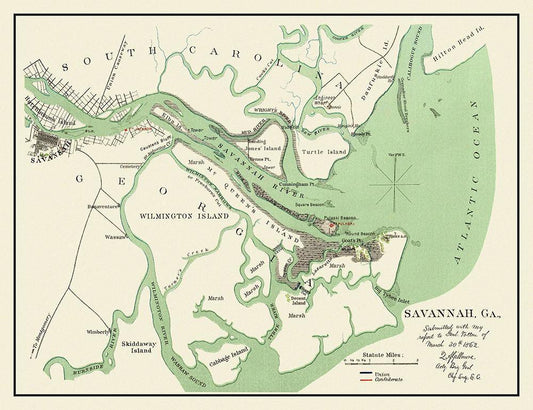 Savannah Georgia - Gillmore 1862 White Modern Wood Framed Art Print with Double Matting by Gillmore