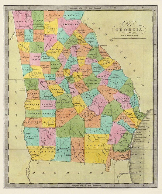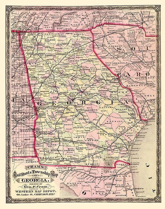 Georgia - Cram 1875 White Modern Wood Framed Art Print with Double Matting by Cram