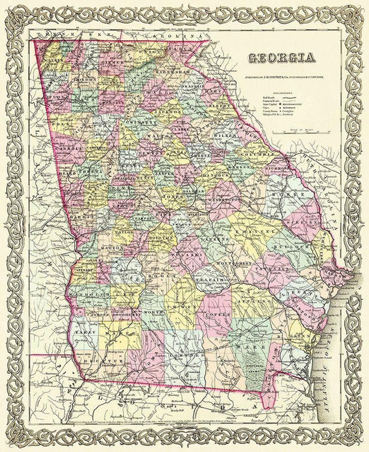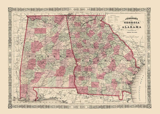 Georgia, Alabama - Johnson 1864 White Modern Wood Framed Art Print with Double Matting by Johnson
