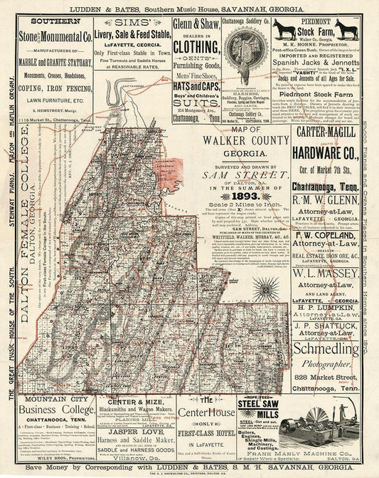 Walker County Georgia - Street 1893 White Modern Wood Framed Art Print with Double Matting by Street