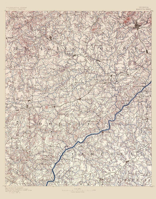 Marietta Sheet Georgia - USGS 1888 White Modern Wood Framed Art Print with Double Matting by USGS