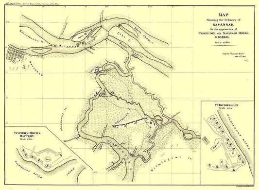Savannah Georgia Defences - Bowen 1865 White Modern Wood Framed Art Print with Double Matting by Bowen