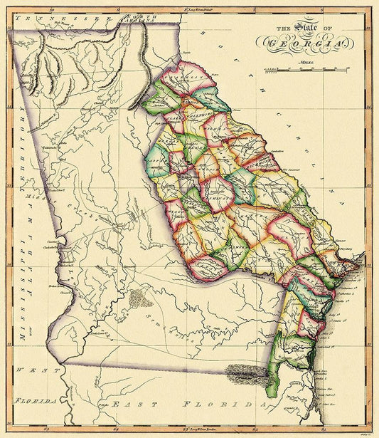 Georgia - Lewis 1817 White Modern Wood Framed Art Print with Double Matting by Lewis