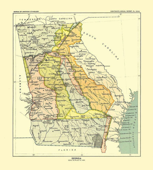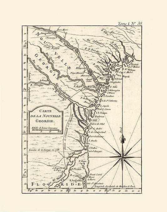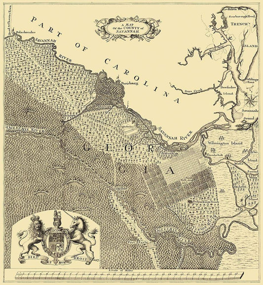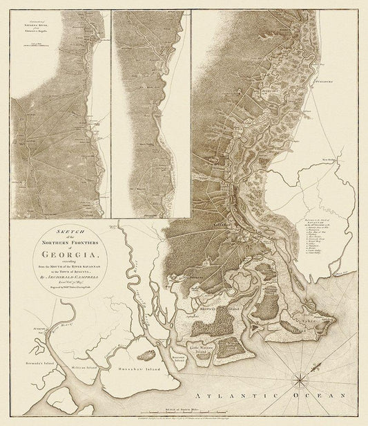 Sketch of the Northern Frontiers of Georgia 1780 White Modern Wood Framed Art Print with Double Matting by Campbell