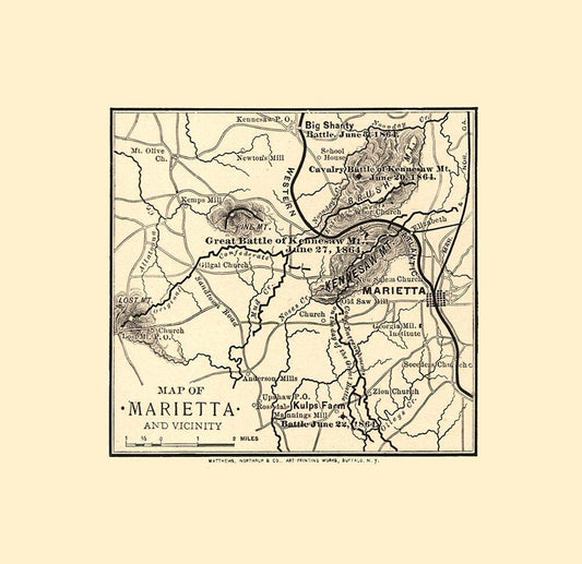 Marietta Georgia Vicinity Battles - Northrup 1864 White Modern Wood Framed Art Print with Double Matting by Northrup