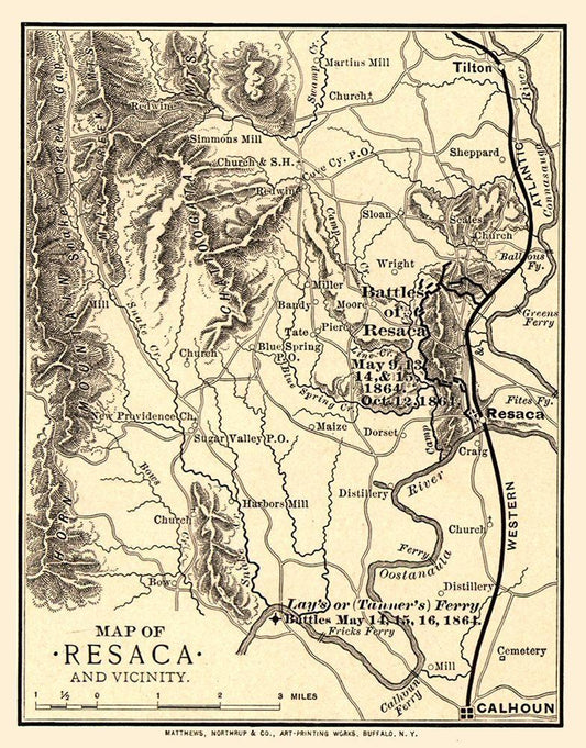 Resaca Georgia Vicinity Battles - Northrup 1864 White Modern Wood Framed Art Print with Double Matting by Northrup