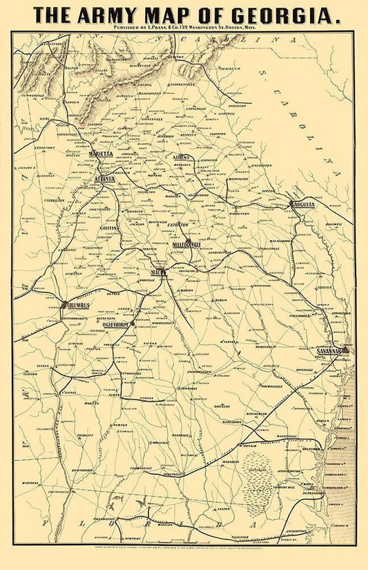 Georgia Army - Prang 1864 White Modern Wood Framed Art Print with Double Matting by Prang