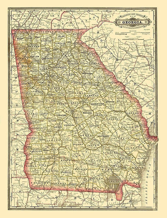 Georgia Railroad - Cram 1883 White Modern Wood Framed Art Print with Double Matting by Cram