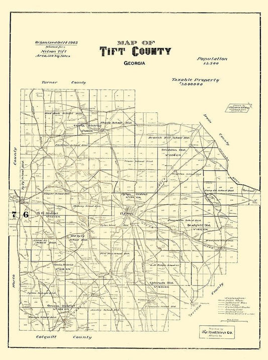 Tift Georgia - Hudgins 1905 White Modern Wood Framed Art Print with Double Matting by Hudgins