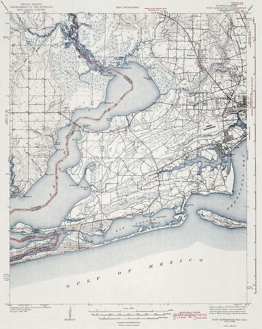 Fort Barrancas Florida Alabama Quad - USGS 1943 White Modern Wood Framed Art Print with Double Matting by USGS