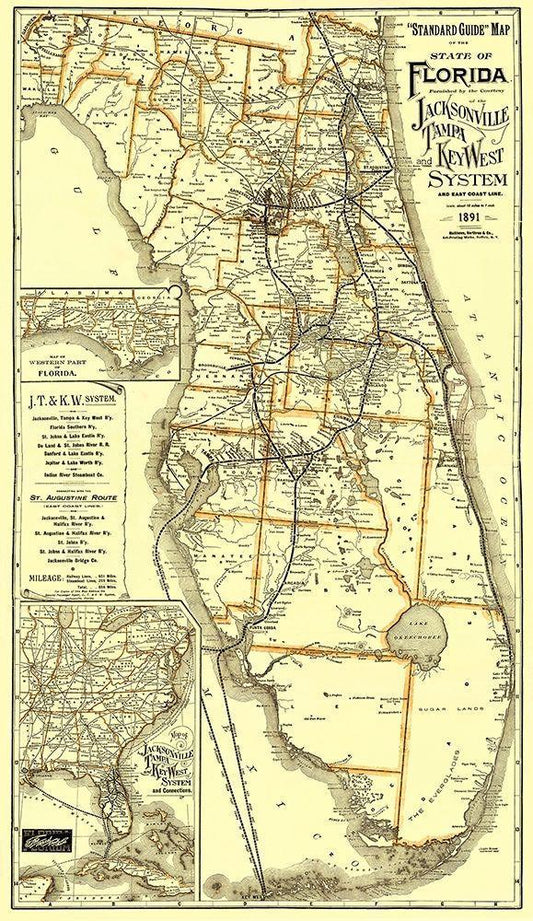 Jacksonville, Tampa, and Key West 1891 White Modern Wood Framed Art Print with Double Matting by Matthews
