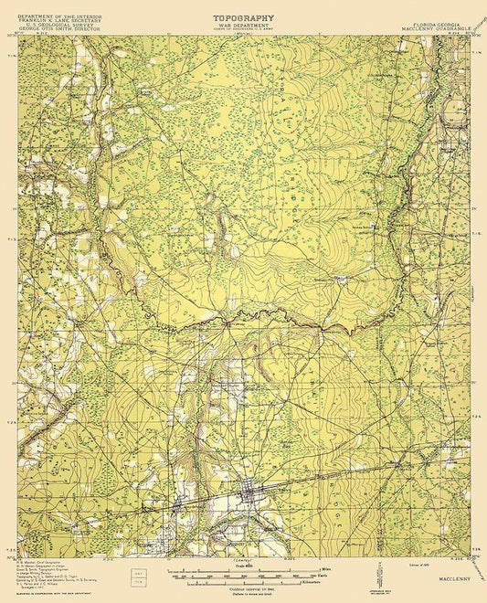 Macclenny Florida Georgia Quad - USGS 1918 White Modern Wood Framed Art Print with Double Matting by USGS