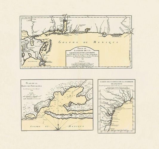 Louisiana Florida Gulf Coast - Sartine 1778 White Modern Wood Framed Art Print with Double Matting by Sartine