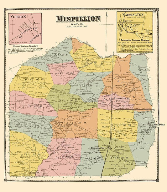 Mispillion Delaware Landowner - Beers 1868 White Modern Wood Framed Art Print with Double Matting by Beers