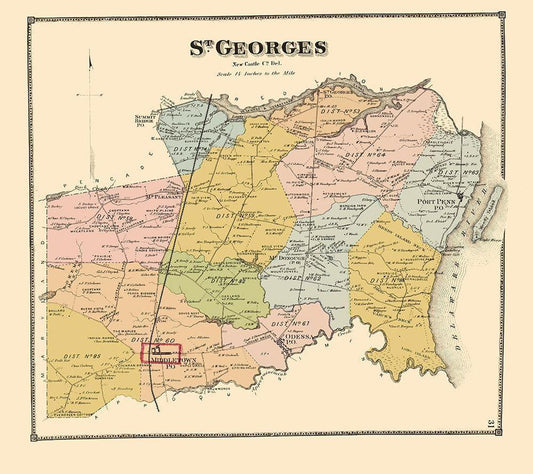 St Georges Delaware Landowner - Beers 1868 White Modern Wood Framed Art Print with Double Matting by Beers