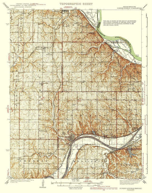 Bonner Springs Kansas Missouri Quad - USGS 1940 White Modern Wood Framed Art Print with Double Matting by USGS