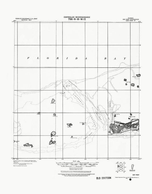 Key West Florida Quad - USGS 1921 White Modern Wood Framed Art Print with Double Matting by USGS