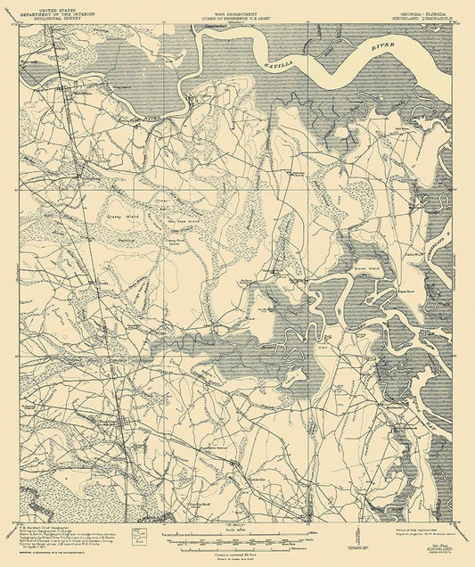 Kingsland Florida Georgia Quad - USGS 1918 White Modern Wood Framed Art Print with Double Matting by USGS