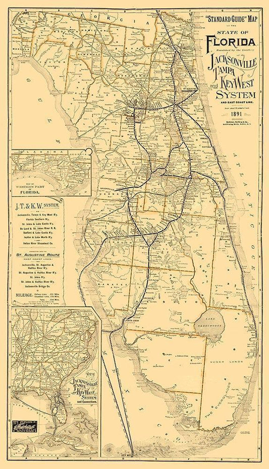 Florida Railway Connections - Zell 1885 White Modern Wood Framed Art Print with Double Matting by Zell