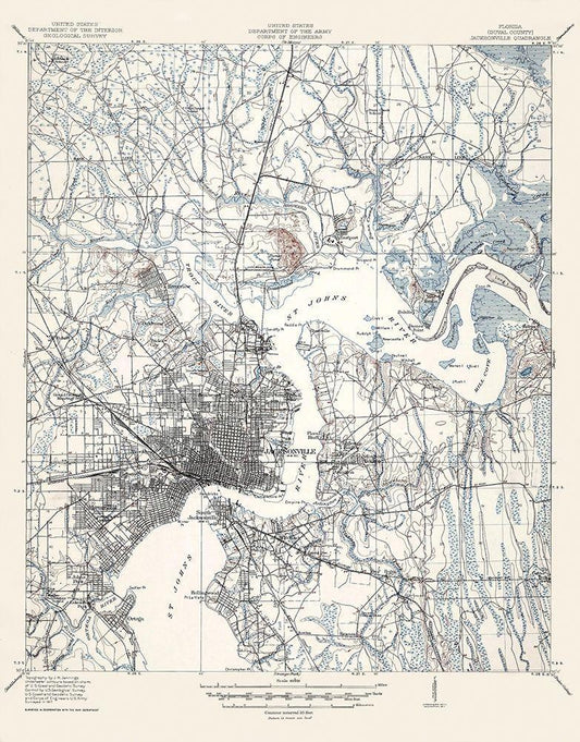 Jacksonville Florida Quad - USGS 1917 White Modern Wood Framed Art Print with Double Matting by USGS